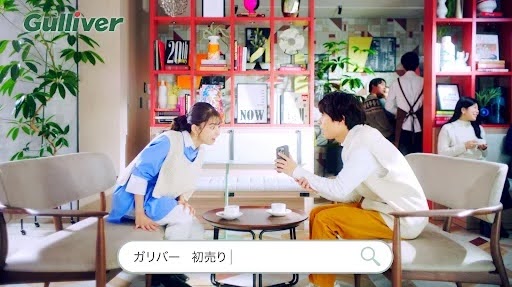 こちらのCMでは男女2人が、ガリバーのウェブサイトから在庫車両を検索するところから始まります。