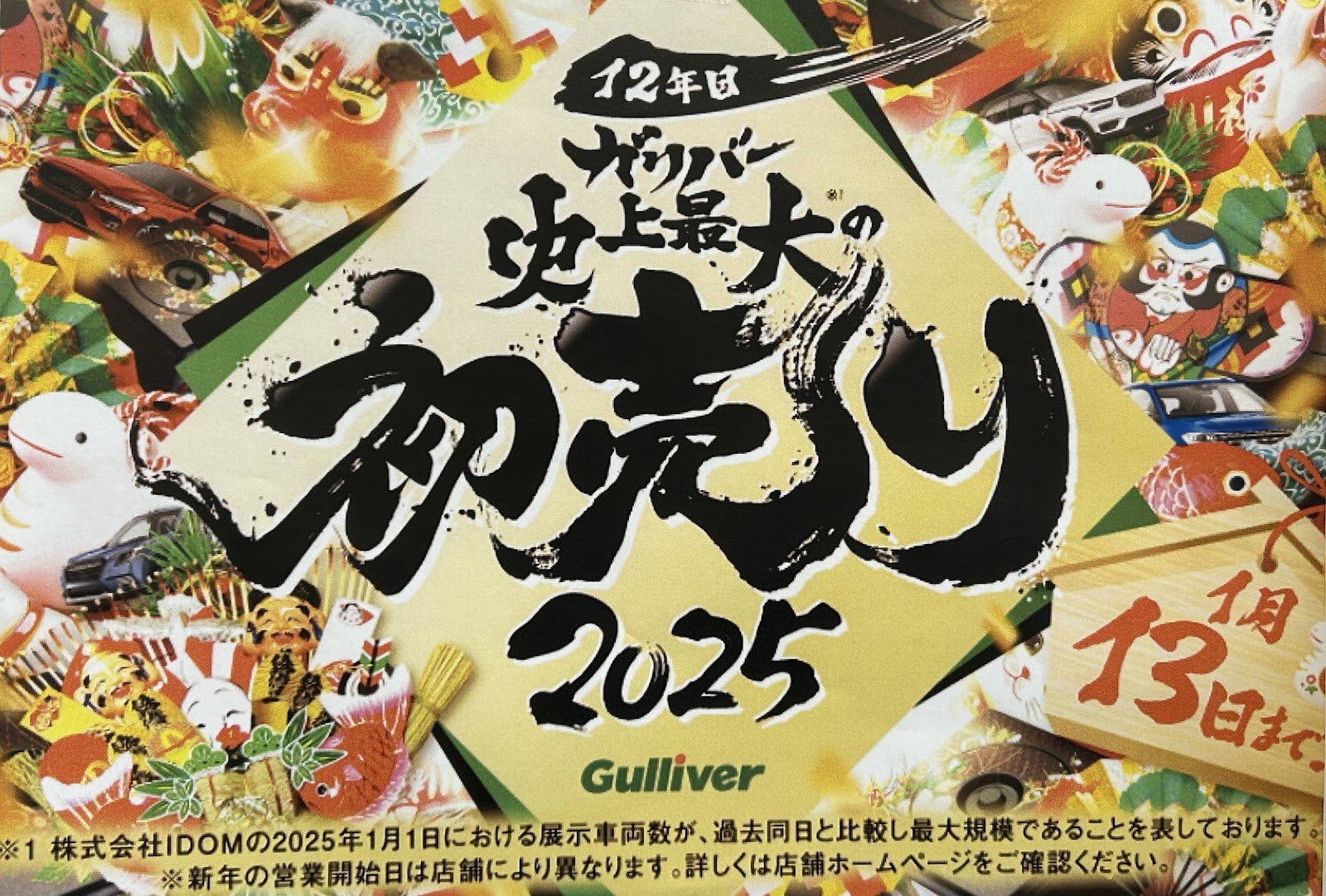 2025年のガリバー初売りは、全国のガリバー店舗および特設サイトで1月1日〜1月13日まで開催されました。